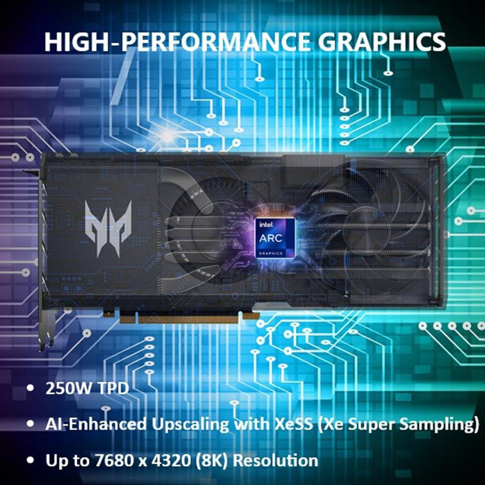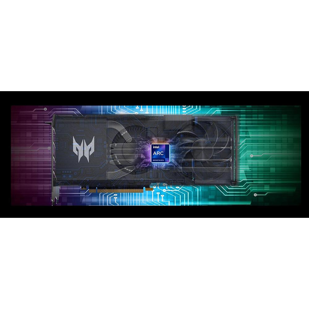 Intel Arc A750 Series, Intel Arc A750 2.20 GHz, 8GB of GDDR6 vRAM 256bit, 512 GB/s, supporting: HDMI, 3x DisplayPort, Connect up to 4 Displays Up to 8K/60 Hz for a single display output Up to 4K/60 Hz for 4 display output, Hybrid Cooling Technology: Ringed axial fan blowerstyle fan Vapor Chamber Design, PCI Express 4.0, 250W, Dual 267 x 117.75 mm , 3Years