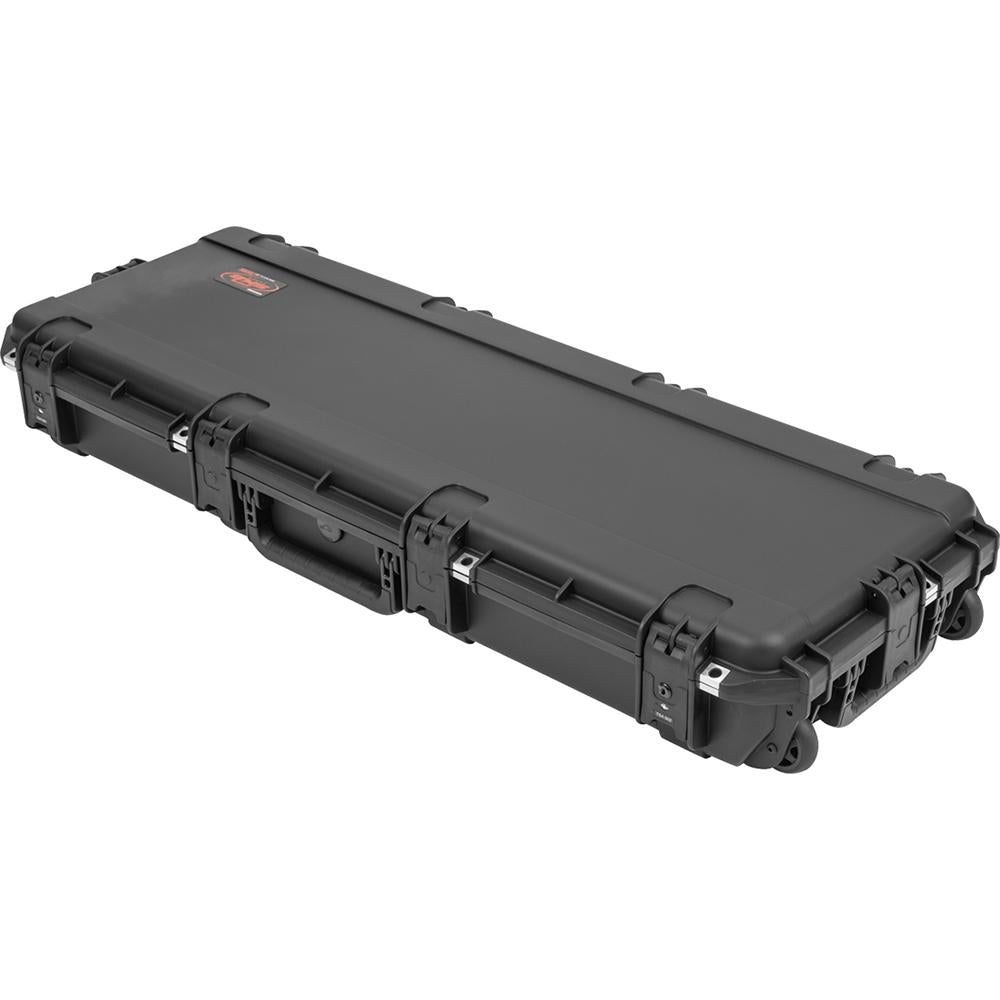 SKB iSeries Injection Molded Mil-Standard Waterproof Cases are molded of ultra high-strength polypropylene copolymer resin, featuring a gasket-sealed, water and dust tight, submersible design (MIL-STD 810H) that is resistant to corrosion and impact damage. Standard features include a molded-in hinge, Trigger Latch System, snap-down rubber over-molded cushion grip handle, automatic pressure equalization valve (MIL-STD 810H), and resistance to UV, solvents, corrosion, fungus, and impact damage (MIL-STD 810H).