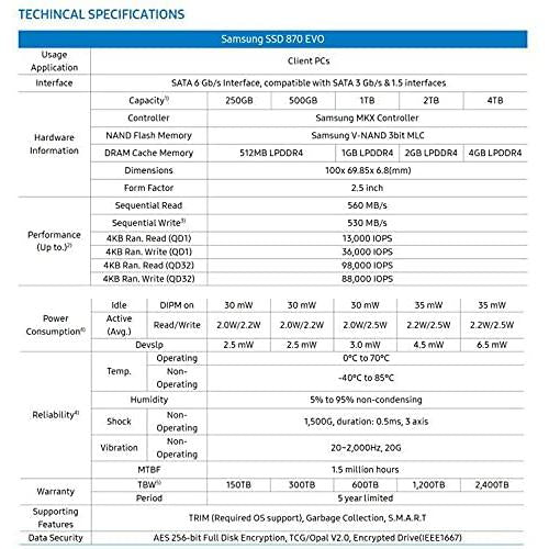 - Samsung 870 EVO SATA 2.5-inch SSD, 1TB - MZ-77E1T0B/AM