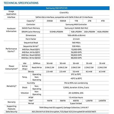 The 870 EVO has been compatibility tested for major host systems and applications, including chipsets, motherboards, NAS, and video recording devices.