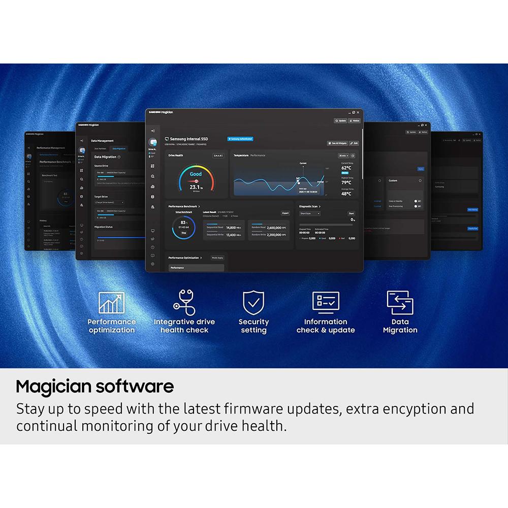 Samsung Magician Support: Manage drive health, performance optimization, and firmware updates in one platform.
