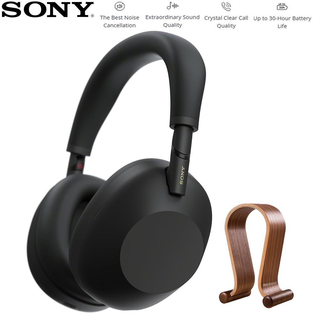 Sony Best Wireless Noise Canceling Headphones Black with Wood Headphone Stand