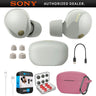 Sony Noise Canceling Truly Wireless Earbuds, Silver + Accessories + Warranty Bundle