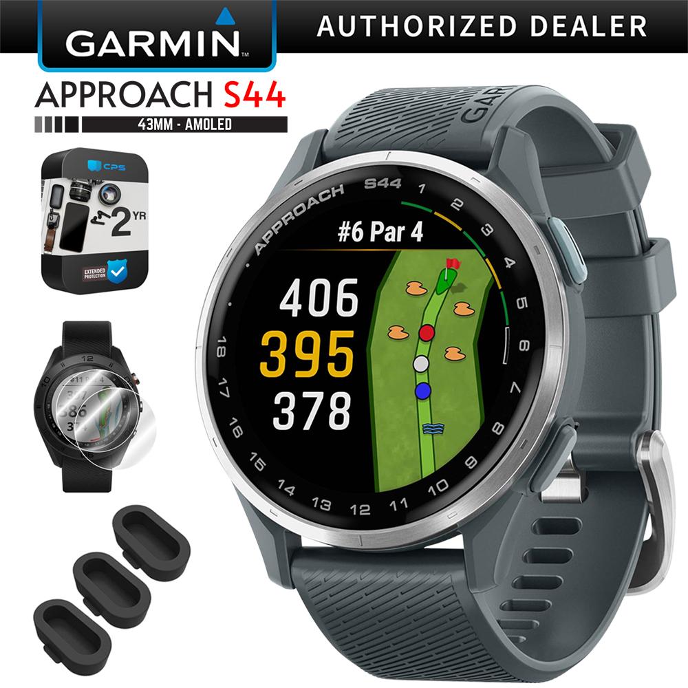 Garmin Approach S44 GPS Golf Smartwatch, Silver Aluminum Bezel + 2 YR Warranty Bundle