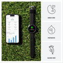 The stunning 1.2-inch AMOLED touchscreen display makes it easy to see key yardages to the green, hazards and layups on 43,000+ courses.