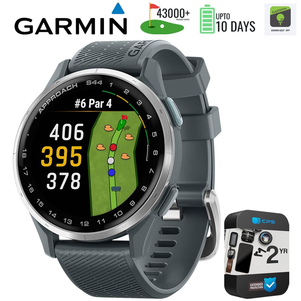 Garmin Approach S44 GPS Golf Smartwatch, Silver Aluminum Bezel + 2 YR Warranty Bundle
