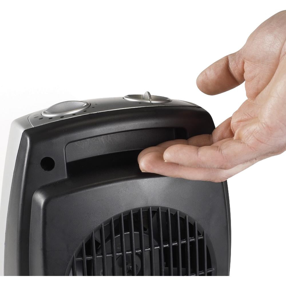 Built-in safety features; including overheat protection; self-regulating ceramic element; and cool-touch housing.