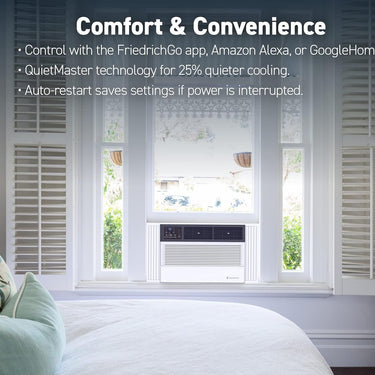 Home or away, you're in control with the FriedrichGo App. The FriedrichGo⢠App offers built-in Wi-Fi control, compatibility with smart home/voice commands, 24-hour timer, and remote control.