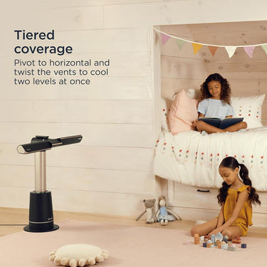 2x more cooling coverage with dual blades, twistable vents, and 180° oscillation