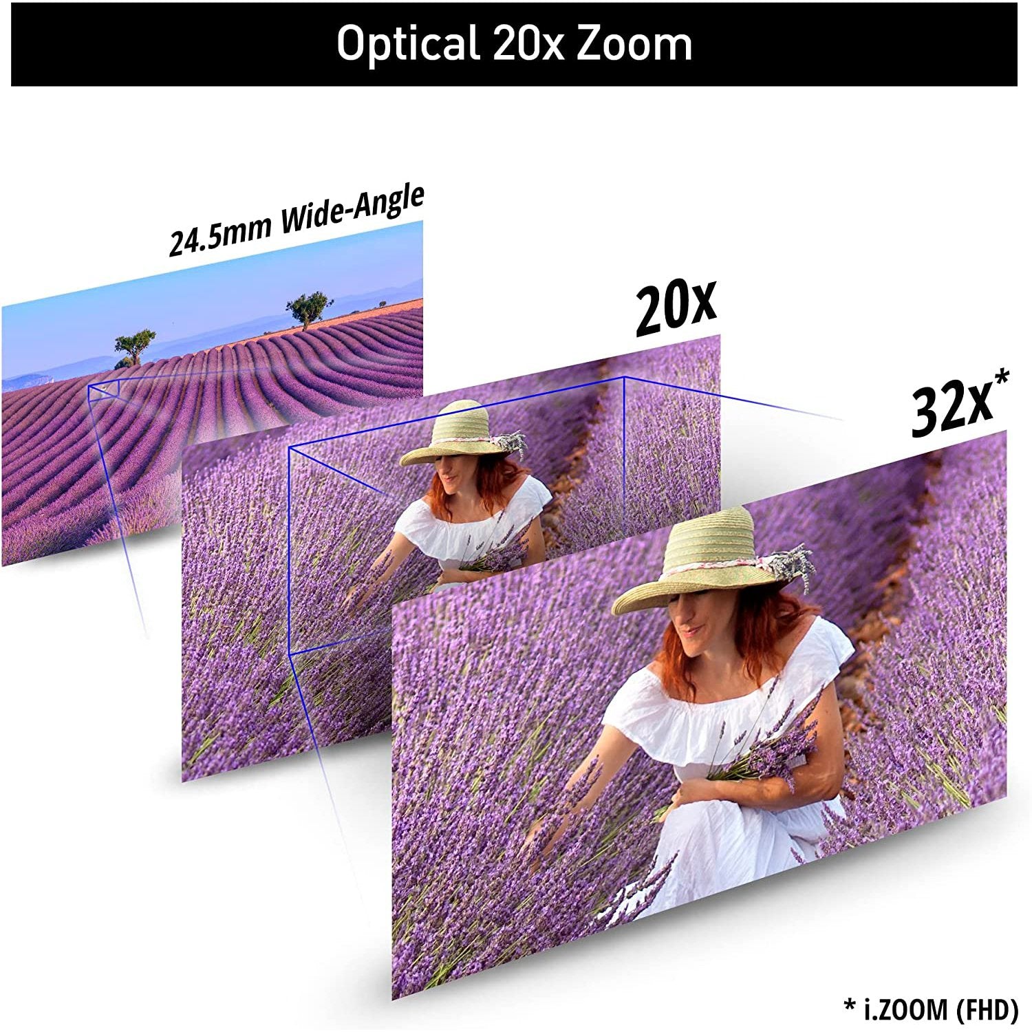 Frame your image without guesswork using the 24.5mm Wide-Angle Lens, Optical 20x Zoom, i.ZOOM 32x (FHD) / 24x (UHD)
