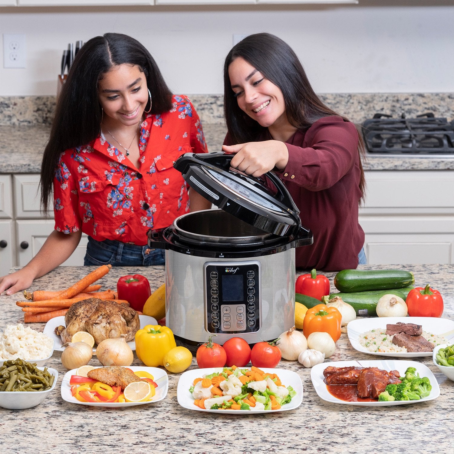 Pressure cooker meals with the Deco Chef 8 QT 10-in-1 Pressure Cooker make homemade meals something to look forward to once again. Now in a stainless steel finish!