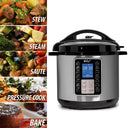 The DG8QTPCG Deco Chef 8 QT 10-in-1 Pressure Cooker (Stainless Steel) brings more than just delicious meals to your dinner table – take advantage of simple cooking processes, faster cooking times and healthier meals without the effort.
