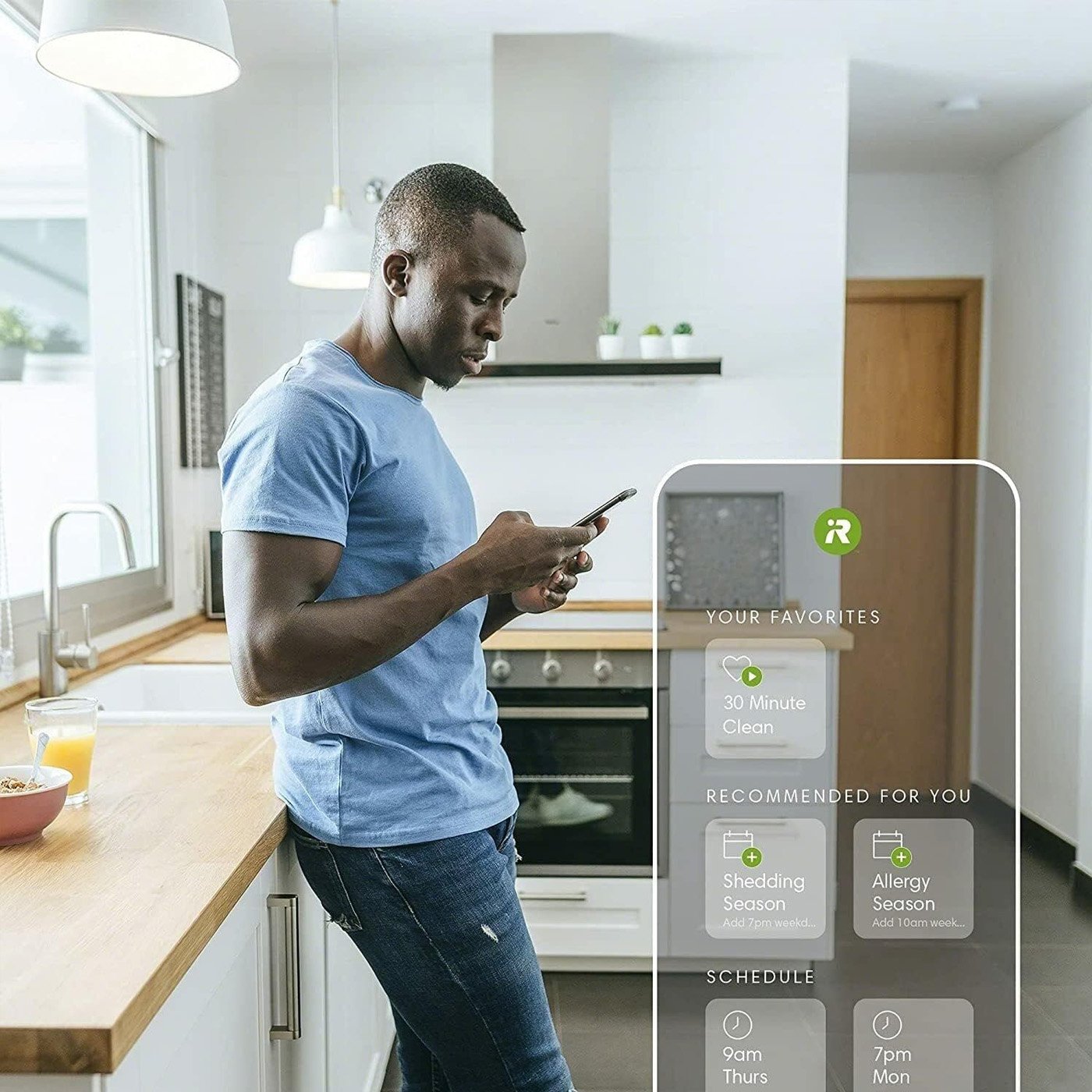 The iRobot HOME is a powerful vacuum cleaner that uses a Premium 3-stage Cleaning System and 10X Power-Lifting Suction to clean stubborn dirt and messes. It uses smart navigation, reactive sensor technology, and Dirt Detect sensors to focus cleaning on the dirtiest areas. The i3 learns your cleaning habits and offers personalized schedules, even suggesting extra cleans during high pollen counts or pet shedding seasons. Its unique Dual Multi-Surface Rubber Brushes are designed for pet-friendly homes.