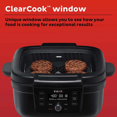 The Instant Indoor Grill combines smart indoor grilling with air frying, baking and more – for perfect chargrilled results. OdorErase filter makes this grill perfect for indoor cooking, removing odors during cooking, so you enjoy your food, but not the smell. Proprietary vent technology delivers even heating by circulating super hot air around food as it cooks. And you can monitor cooking with the ClearCook window, which lets you see your progress. Finally, the included detachable grill plate is dishwasher-safe, so clean-up is effortless.