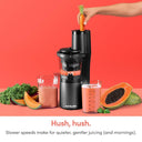 STRONG & STEADY: High-torque, low-speed motor quietly spins at 65 RPM to crush and squeeze deep nutrition out of fruits and veggies.