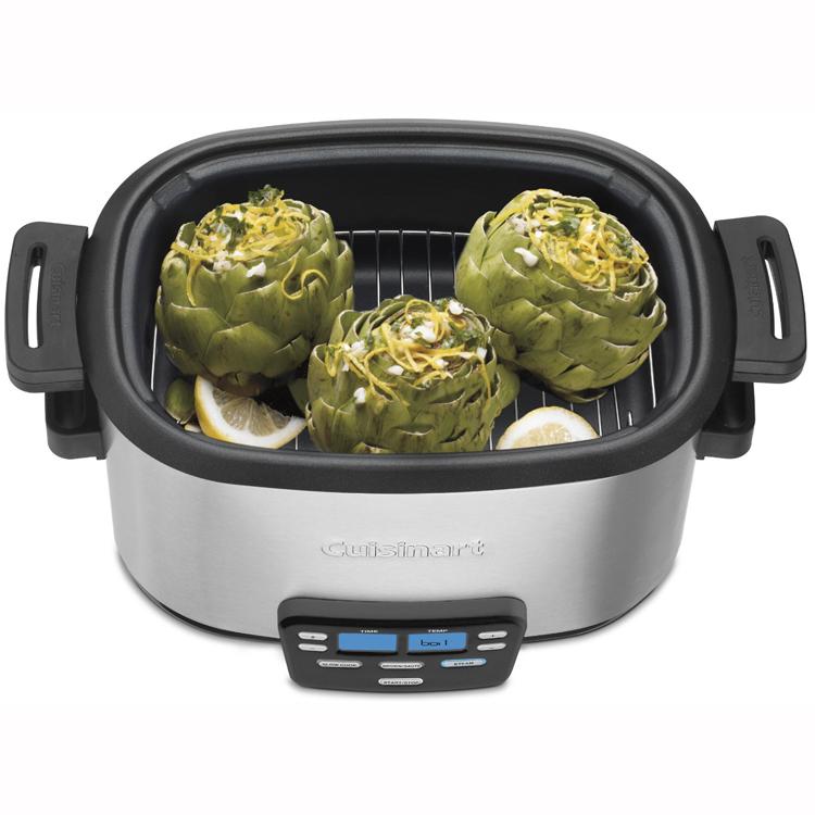 Create one-pot meals your family will love with the Cuisinart Cook Central 3-in-1 Multicooker. Three fully programmable cooking functions let you saute vegetables, brown meats and slow cook your favorite comfort foods right in the unit. Skip the stovetop with combination cooking - brown your ingredients in the unit and then simply switch to the slow cook function. Use the Cook Central to prep any aspect of your favorite dish. Select the steam function to prepare stuffed artichokes to start a gourmet meal or to create a healthful vegetable medley side dish. The Cook Central can even do dessert. With numerous recipes to choose from in the included booklet, the opportunities are endless!