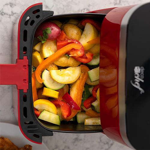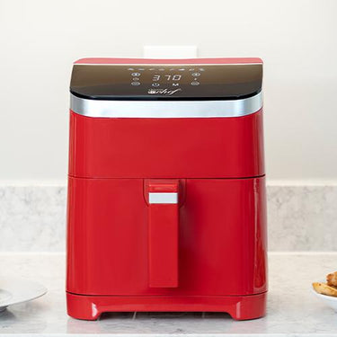 Introducing the Deco Chef 5.8QT Electric Air Fryer in vibrant red, designed to revolutionize your kitchen and elevate your culinary experience. With simple touch controls, this modern kitchen staple seamlessly integrates into your daily life, bringing convenience, health, and versatility to your cooking routine.