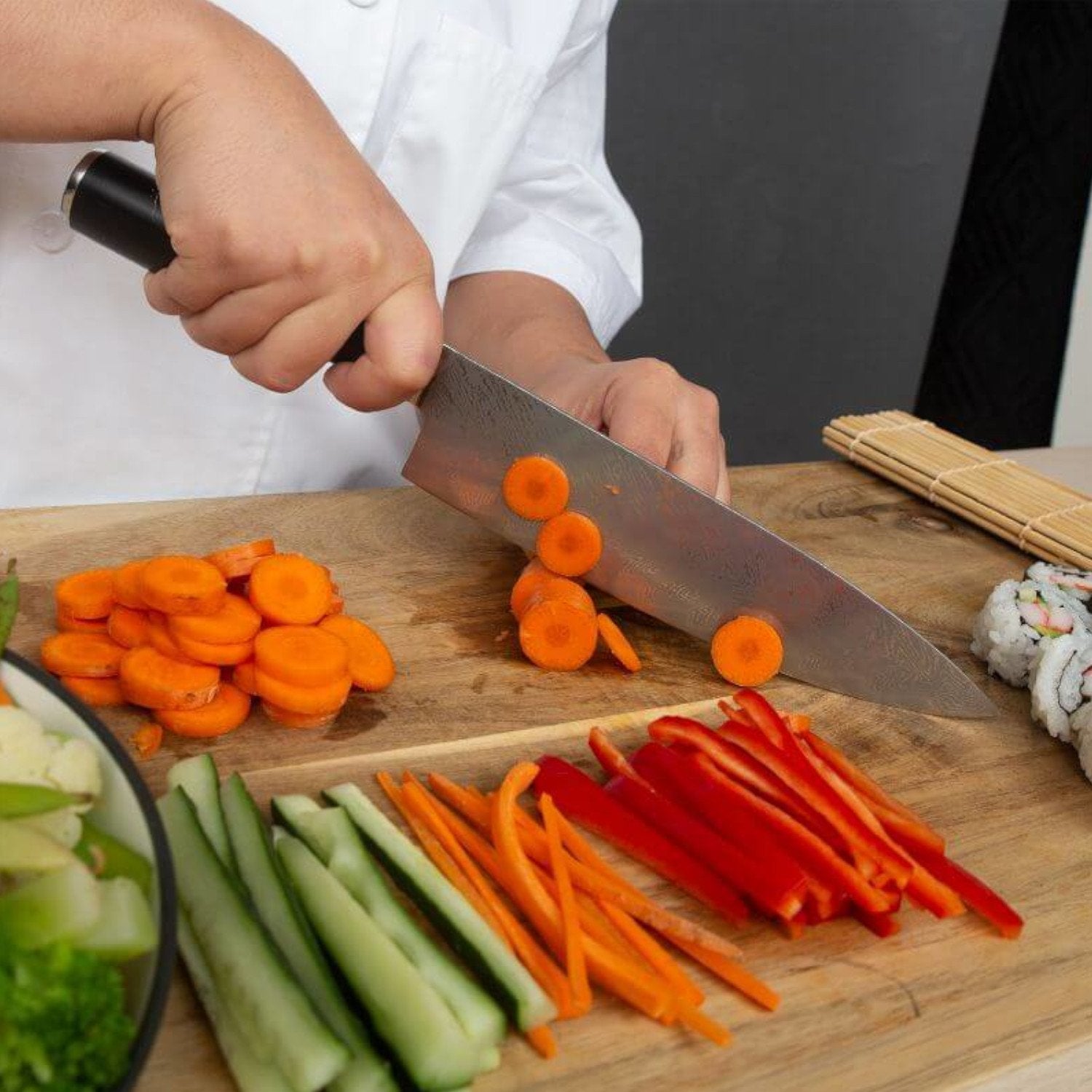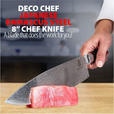 Make meal preparation easier and more fun as you slice, dice, chop, and cut your way to delicious foods with the Deco Chef Japanese Damascus Steel 8” Chef Knife - a blade that does the work for you!