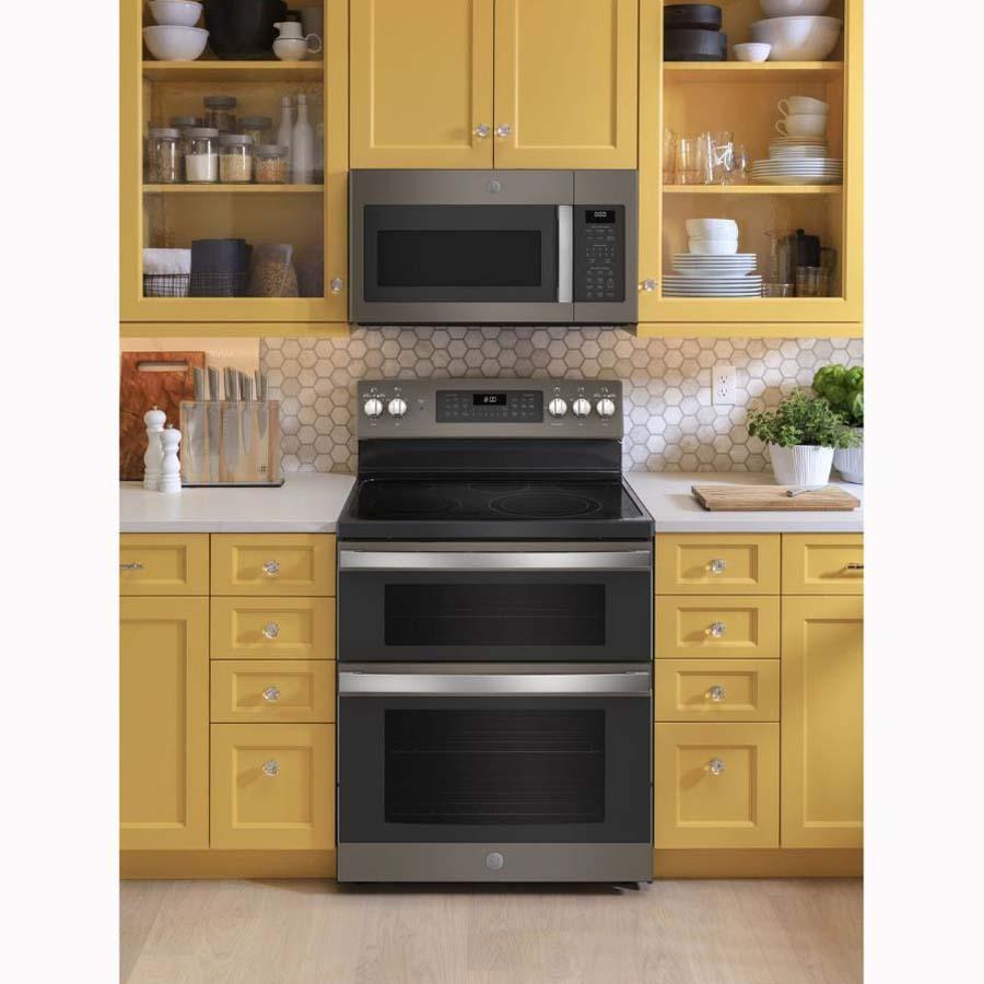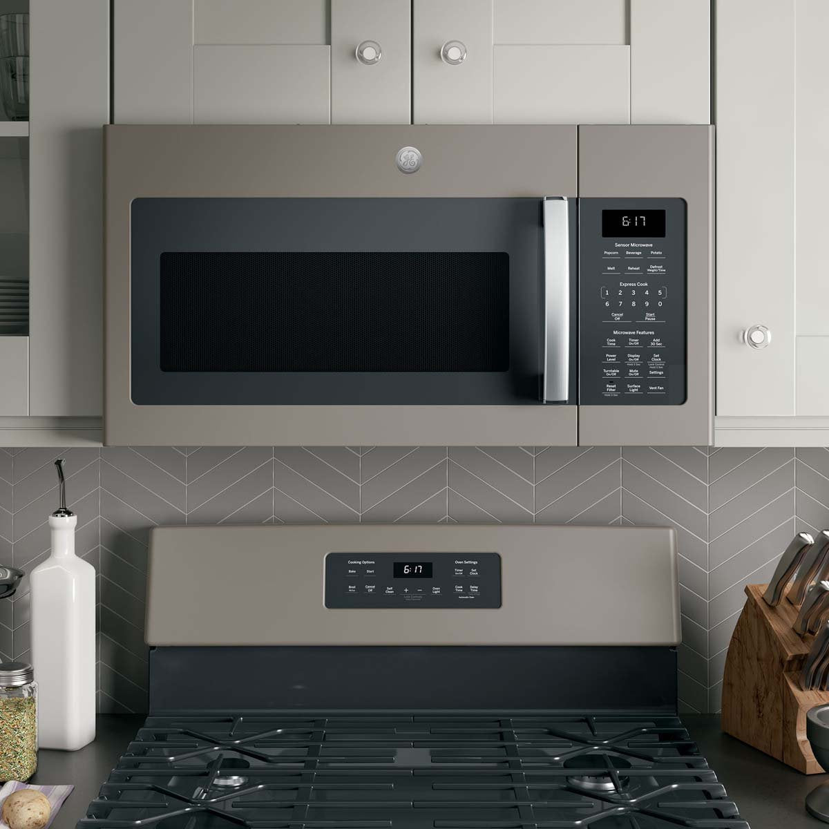 GE 1.7 Cu. Ft. Over-the-Range Sensor Microwave Oven provides added counter space and simple installation. With the advanced ability to cook food at its optimal time and setting, simply enter the weight of the food, and the oven automatically sets the optimal defrosting time and power level or set your desired time for defrosting.