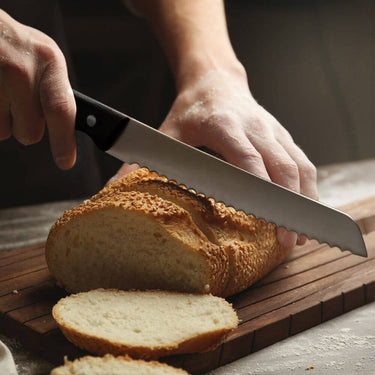 A thick-bladed knife used for cutting loaves of bread that excels at cutting through thick and hard crusts.