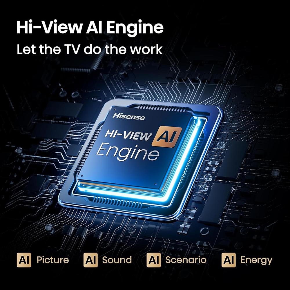 Feel like you're in the stands even when you're watching from your couch. Controlled by a high-powered Al chipset, Hi-View Al Engine uses advanced picture processing, like Al 4K Upscaler, Al Smooth Motion and Al Sports Mode to sharpen and boost the quality of whatever's on your TV.