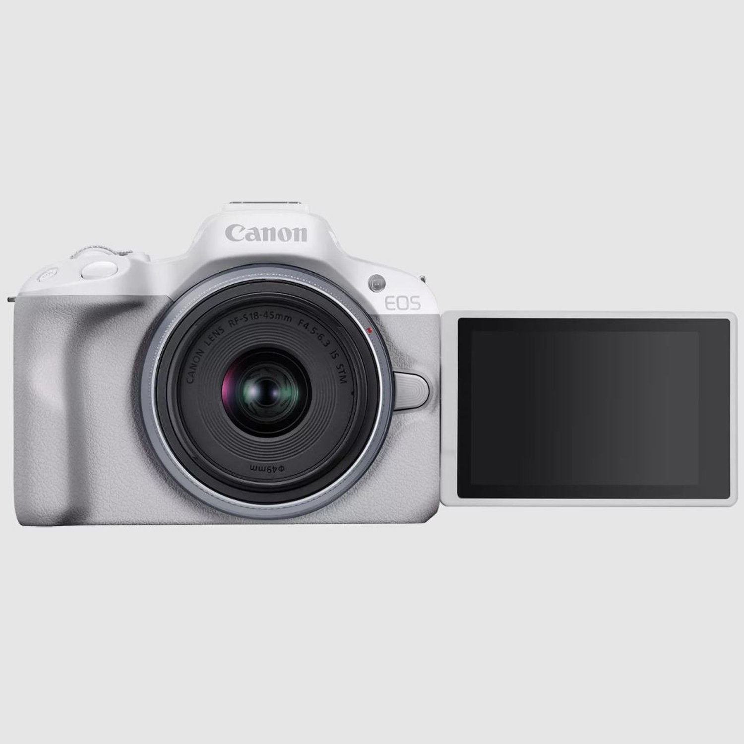 Canon EOS R50 Mirrorless Camera White + RF-S 18-45mm F4.5-6.3 IS STM Lens + Pro Bundle
