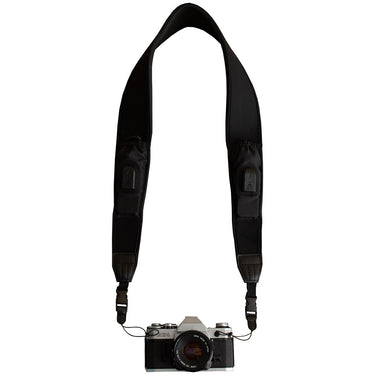 • Ruggedly designed to secure and evenly distribute the weight of a full size camera with a professional lens.