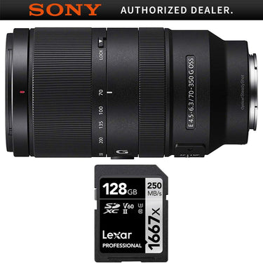 Sony E 70-350mm F4.5-6.3 G OSS Super-Telephoto Lens with Lexar 128GB Memory Card