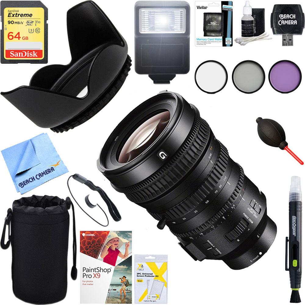 This powered zoom lens delivers optimum performance in Super 35 mm/APS-C moviemaking applications, starting at 18 mm wide-angle and extending through an impressive 6.1x zoom range with a constant F4 maximum aperture. G Lens optical performance delivers image quality that is suitable for 4K production throughout the zoom range, right out to the image periphery. Sony SMO design minimizes image shift due to lens operation, while high-level zoom control and refined focus add to professional overall performance.