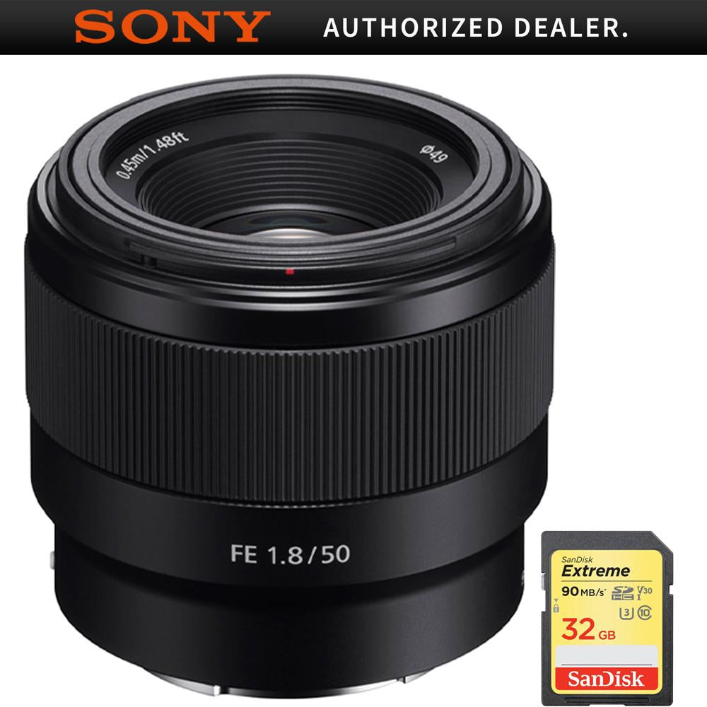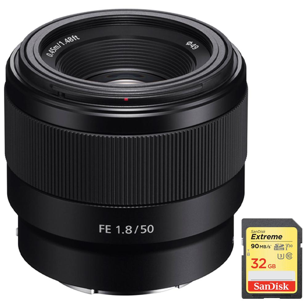 Sony FE 50mm F1.8 Full-frame Prime E-Mount Lens + 32GB Extreme SD Memory Card