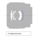 The lens has an innovative optical design to achieve clear, high-quality images by effectively minimizing distortion and chromatic aberration. A double-gauss configuration effectively suppresses field curvature and distortion, while a precisely placed aspherical element controls spherical aberration and coma for excellent optical characteristics right out to the image periphery. An aspherical element in a new optical design controls all types of aberration (spherical, coma, distortion), rendering the subject with superior sharpness.