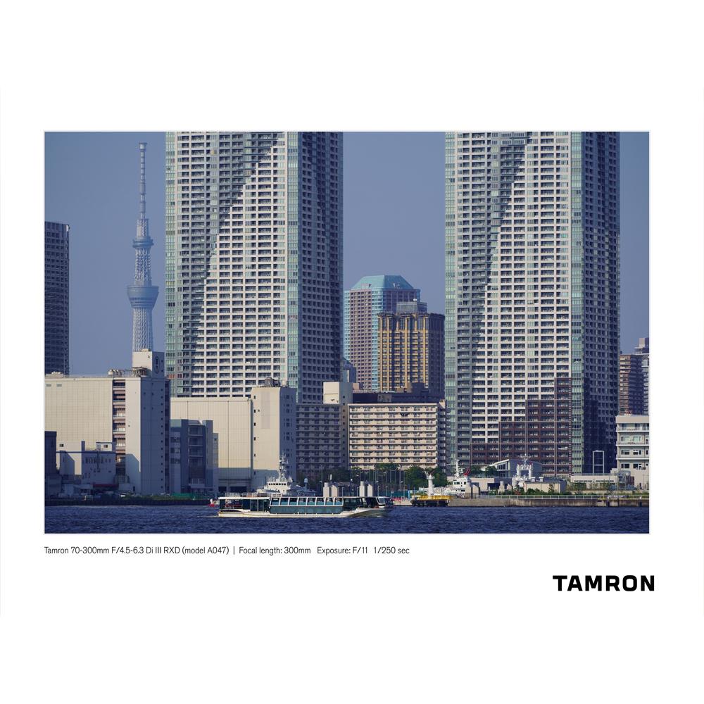 The 70-300mm F/4.5-6.3 Di III RXD (Model A047) for Sony full-frame E-mount mirrorless cameras is a telephoto zoom lens designed and created so photographers of all skill levels can enjoy high quality images comfortably. Tamron’s new 70-300mm F4.5-6.3 covers a broad telephoto zoom range yet is the world's smallest size and lightest weight, coming in at 148mm (5.8 in) long with a maximum diameter of 77mm, and weighing just 545g (19.2 oz). With special emphasis on resolving power, Tamron has deployed special lens elements appropriately arranged to correct chromatic aberration, generally very strong in a telephoto lens, as well as other aberrations. Users can enjoy high-resolution images combined with the stunning bokeh qualities that are achievable only with a telephoto lens. The lens also incorporates the RXD (Rapid eXtra-silent stepping Drive) stepping motor unit, a high-speed precision AF drive system that is remarkably quiet. Tamron's Moisture-Resistant Construction provides extra protection, while various features that are built into Sony mirrorless cameras, including "Eye AF," are supported. The 70-300mm F4.5-6.3 is a versatile lens for photographing landscapes, sports and other action, pets and wildlife and more. The lens also demonstrates its potential for portrait shooting, casual snapshots and scenarios that require you to be mobile and shoot handheld, like sporting events. The apparent image compression and the close-up effects characteristic of telephoto lenses naturally amplify photographic expression. Zooming in on distant objects and making them appear closer is one of the joys of telephoto shooting. This zoom lens provides an entryway into that new world.