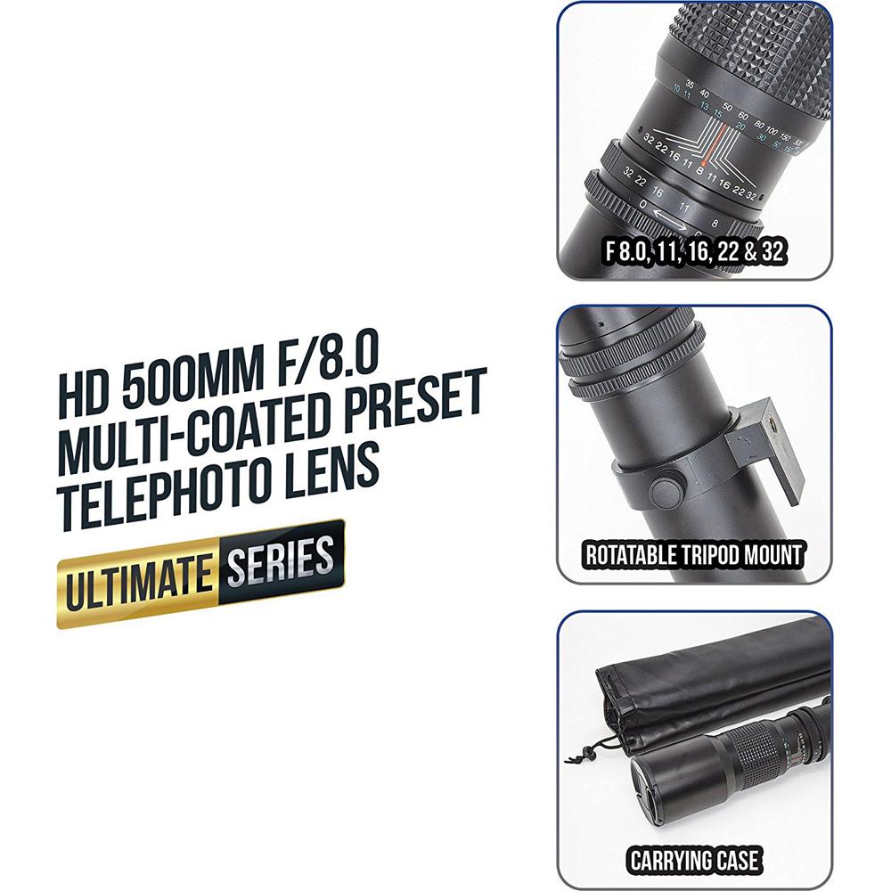 Ultimaxx 500mm f/8 Multi-Coated Preset Telephoto Lens - Open Box
