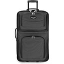 Travel in sturdy and affordable style with this 25-inch expandable rolling luggage by Travel Select. This deluxe set features expandability on all upright cases. It is made of superior two-tone polyester fabrication with PVC backing. It features inline skate wheels and an internal retractable push-button handle system for rolling ease and comfort. It has multiple front zippered pockets. It has an add-a-bag strap and clasp for toting an additional bag.