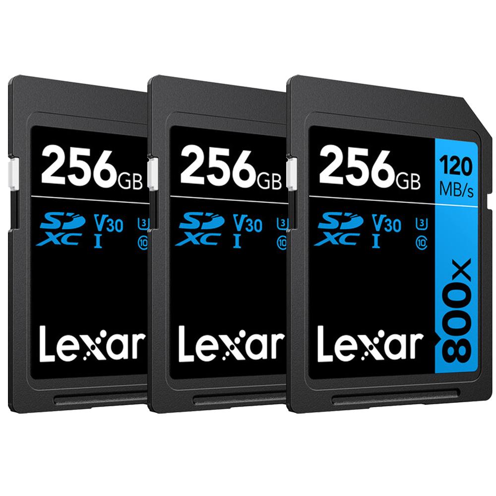 Lexar 256GB High-Performance 800x UHS-I SDHC Memory Card BLUE Series - (3-Pack)