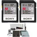 Sony Memory Card 128GB x 2, UHS-II SD, CL10, U3, Max R260MB/s Bundle with Accessories