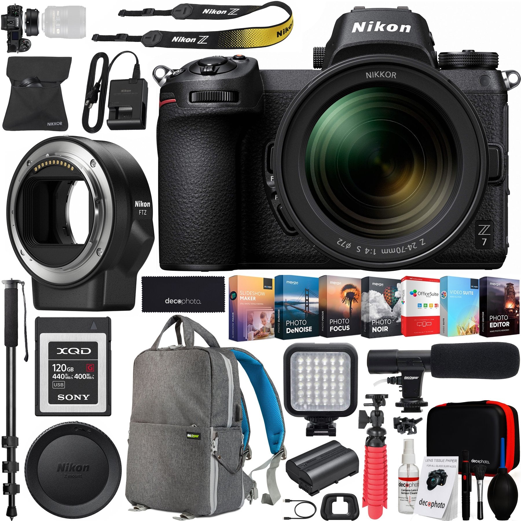 Nikon Z7 FX Mirrorless 4K Camera with NIKKOR Z 24-70mm f/4 S Lens + FTZ Adapter Bundle