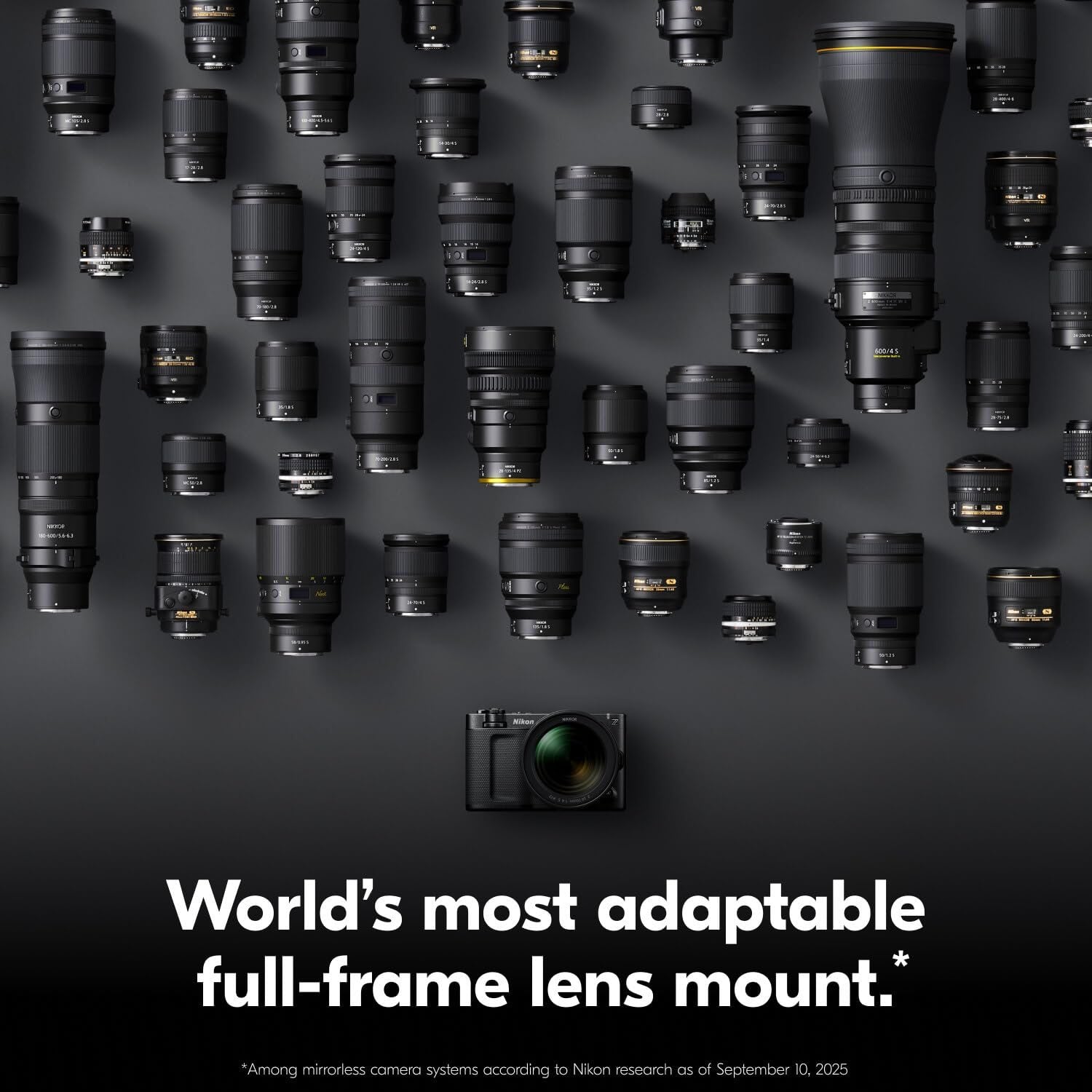 Accepts FTZII Mount Adapter with F-mount lenses. Capable of supporting third-party lenses, however when using non-Nikon adapters with third-party lenses, some functions may not be supported.