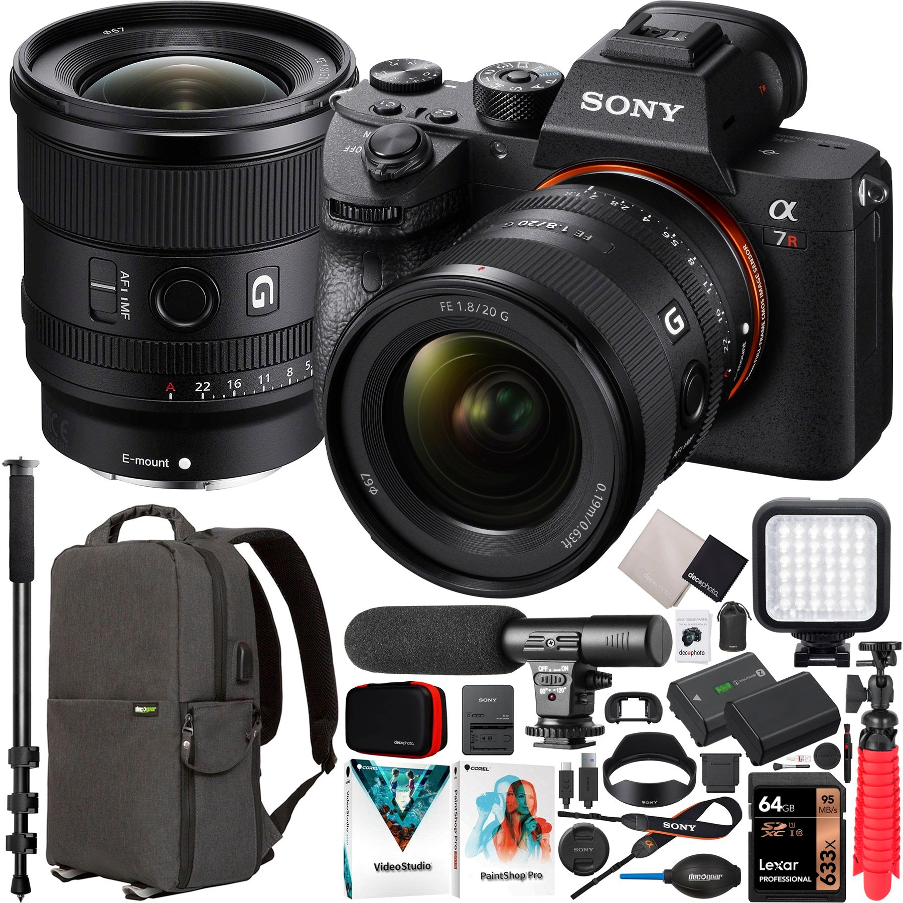 Sony a7R IV Mirrorless Full Frame Camera Body + 20mm F1.8 G Lens SEL20F18G Kit Bundle