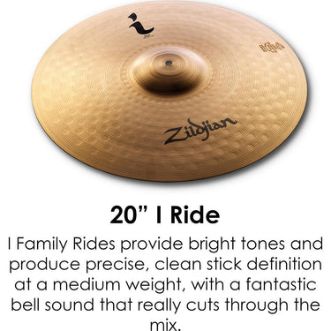 Taking its name from Ilham, the Turkish word for inspiration, the I Family is a collection of expressive sounds designed to bring your playing to the next level. Broaden your sonic horizons from the fundamentals, and let your individual voice shine with this family of cymbals that feature modern weights and sizes, hammering, and extensive lathing. Explore and go further with I, and with the entire universe of Zildjian.