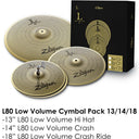 Zildjian L80 Low Volume Cymbal Pack with Hi-Hats, Crash, and Crash Ride