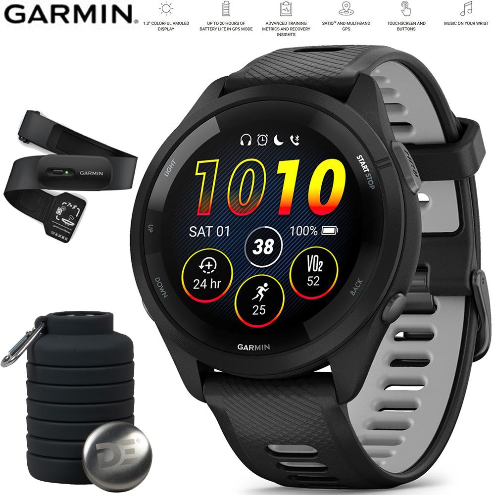 Garmin Forerunner 265 GPS Smartwatch Black/Gray + Bottle & Heart Rate Strap XS-S