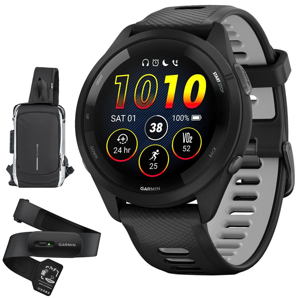 Garmin Forerunner 265 GPS Smartwatch, Black/Powder Gray w/ Garmin HRM 200 (M-XL) Bundle