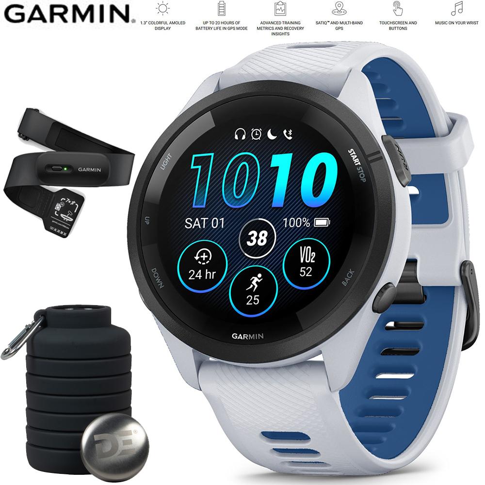 Garmin Forerunner 265 GPS Smartwatch Whitestone/Blue + Bottle & Heart Strap XS-S