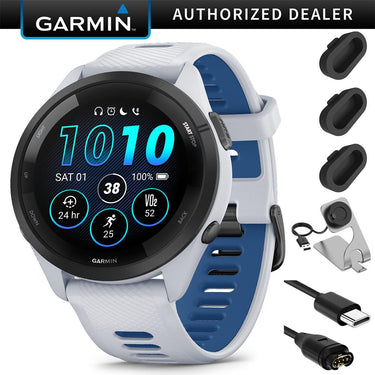 Garmin Forerunner 265 GPS Smartwatch, Whitestone + Charging Dock + Dust Cover Bundle