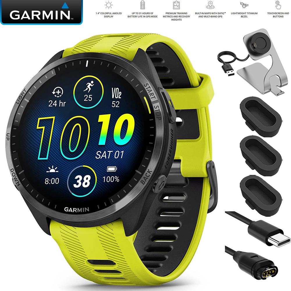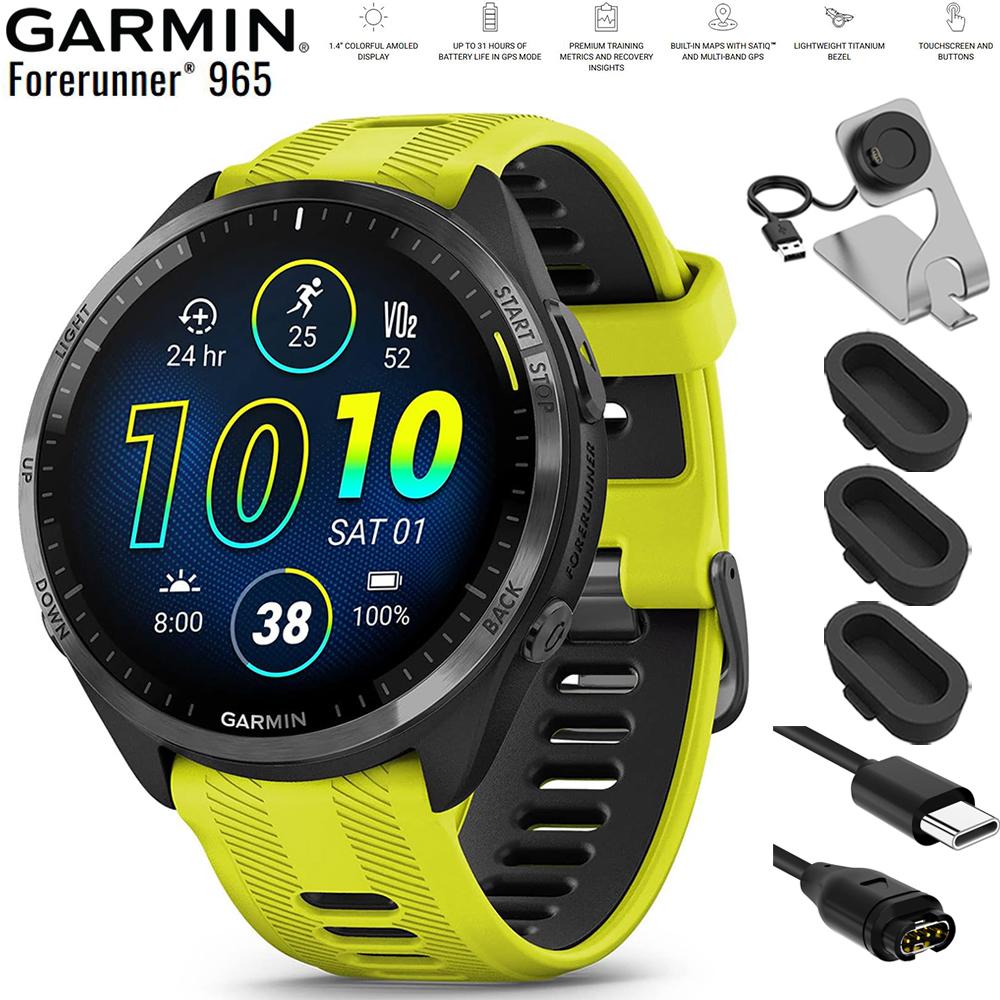 Garmin Forerunner 965 Running Smartwatch Amp Yellow and Black + Charging Bundle