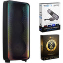 Get the party started with the Samsung ST90B Sound Tower and fill the room with rich sound and LED party lighting. Sing songs on Karaoke mode or pump the bass to set the vibe. Rain or shine, enjoy year-round outdoor entertainment. Invite your friends over and connect two smart devices simultaneously. Plus, download the Sound Tower App to control everything from built-in LED lighting to sound effects right from your Android or iOS device.