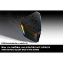 Now you can take the entertainment outdoors with a sound tower that is IPX5 rated for water resistance.