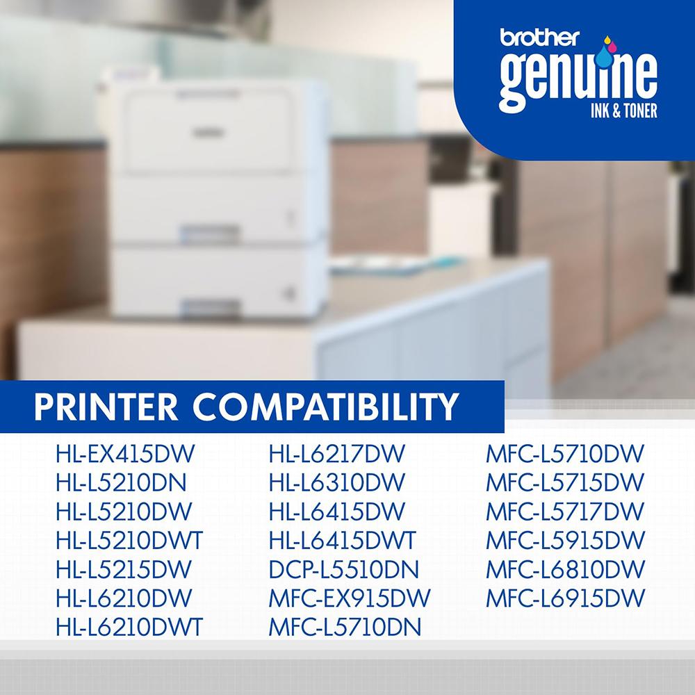 Compatibility: HL-L5210DN, HL-L5210DW, HL-L5210DWT, HL-L5215DW, HL-L6210DW, HL-L6210DWT, HL-L6217DW, HL-L6310DW, HL-L6415DW, HL-L6415DWT, HL-EX415DW, DCP-L5510DN, MFC-L5710DN, MFC-L5710DW, MFC-L5715DW, MFC-L5717DW, MFC-L5915DW, MFC-L6810DW, MFC-L6915DW, MFC-EX915DW