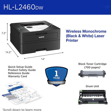 Brother HLL2460DW Wireless Compact Monochrome Black White Laser Printer